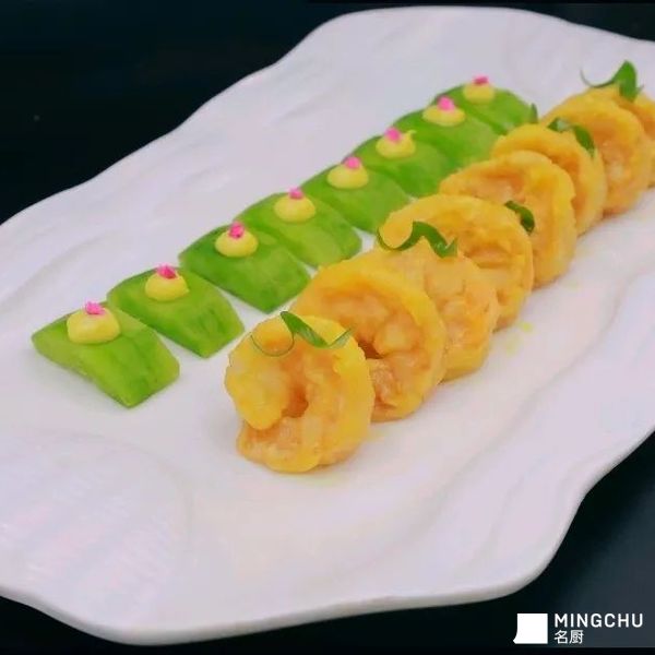 脆虾球裹青提芥末酱,果甜解辛,外酥内润,果醋芥末调浆炸制,酸甜微呛。