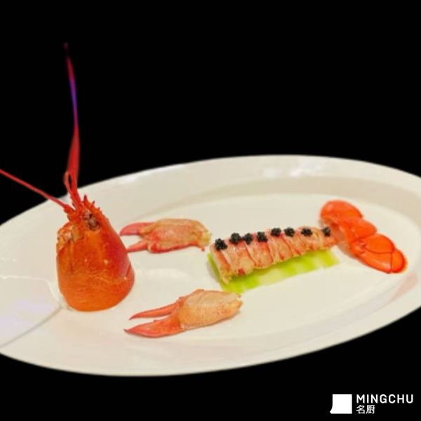源自潮州经典“打冷”龙虾冷菜,以极致锁鲜的冰镇技法保留龙虾本味鲜甜,搭配鱼子酱的咸鲜馥郁与青笋的脆爽解腻,在传统技法上做高端宴席升级,造型精致,口感层次丰富,适配高端宴请与私宴场景。