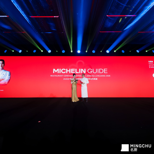 2026 沪苏浙米其林指南餐厅庆典晚宴现场,特邀福建省米其林一星餐厅鲜承餐厅主厨 杜国金 带来《台州雨雾山茶油润闽东壹鱼》。