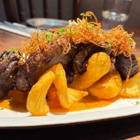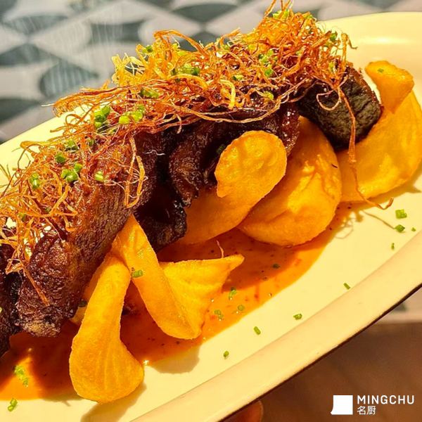 这是我们开店至今 月销售900+的爆款改良版本,用煮再碳烤的和牛侧筋搭配酥脆可口的翘翘薯,风味口感更胜一筹!