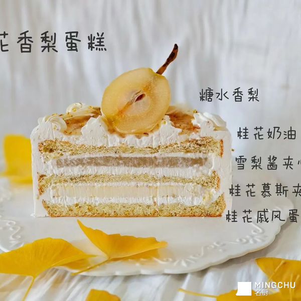 主打秋日清润、花香果香交融的温柔口感,以淡雅桂花香气为基调,搭配清甜多汁的香梨,打造不腻口、超清爽的秋日限定甜品。整体口感绵密又水润,桂花的清甜花香贯穿始终,香梨的鲜爽解腻回甘,完全区别于厚重的奶油蛋糕,适配秋季下午茶、养生甜品、私房季节爆款,老人小孩都适配,颜值与风味双在线,氛围感拉满。