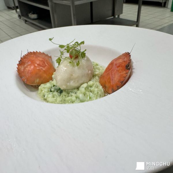 春天的小花盖蟹肉质鲜甜,蟹黄满满,同与大黄鱼肉制作成鱼圆,淋上清鸡汤,海鲜的鲜与鸡的香浓气息碰撞!