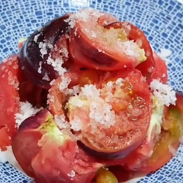 不知道你们有没有这个嗜好呢!在我们宜兴,有个下酒好美味,雪顶火山番茄,现在新品种上市,紫色沙馕番茄。搭配白糖,太美味了