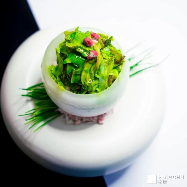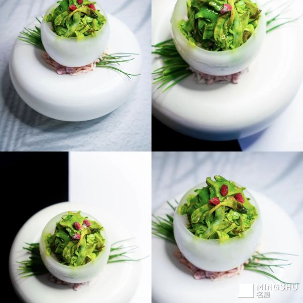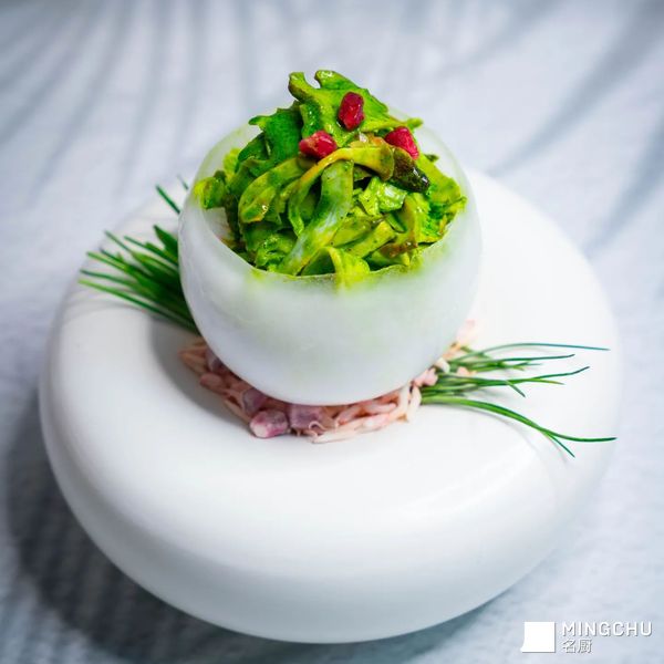 白螺映翠汁、寒冰衬碧色,冰白+翡翠绿层次干净雅致,形似天然翡翠玉石,菜品得名翡翠海螺。