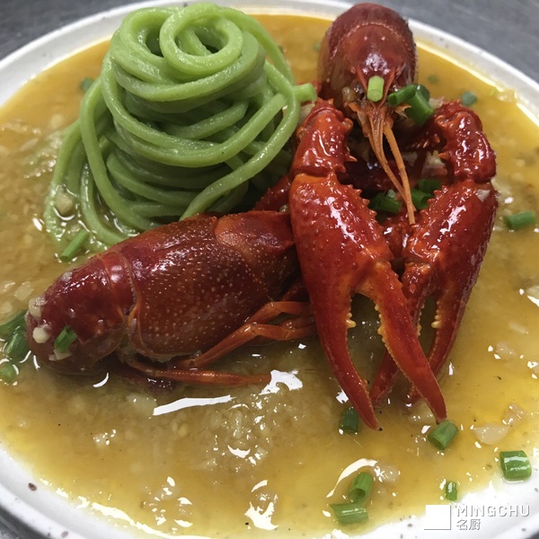 金汤蒜香小龙虾配菠菜面