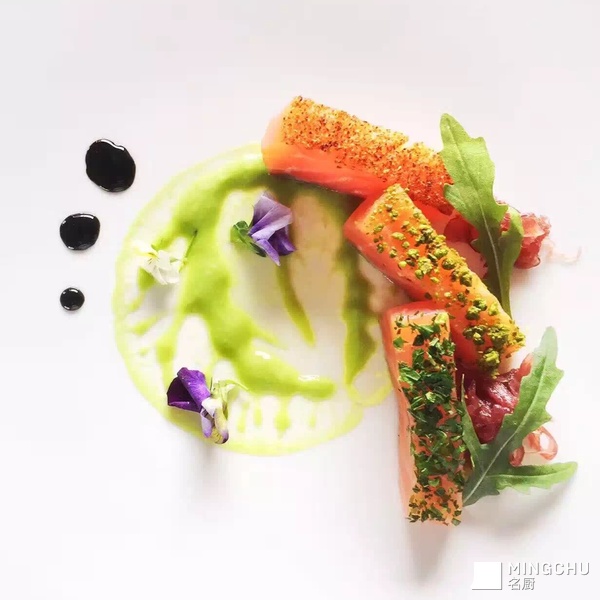 腌三文鱼配柠檬碎欧芹及开心果仁