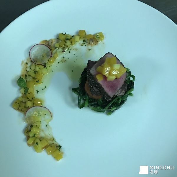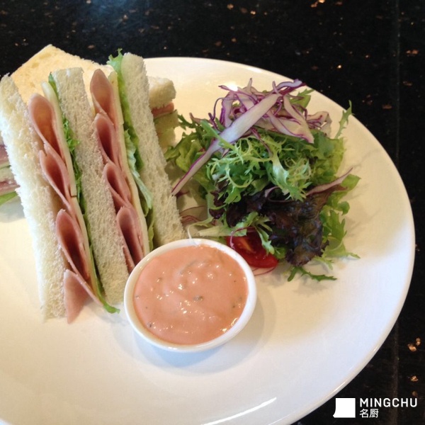 番茄芝士沙拉,酸甜萝卜皮,盐焗金枪鱼配芒果莎莎,青瓜火腿三明治