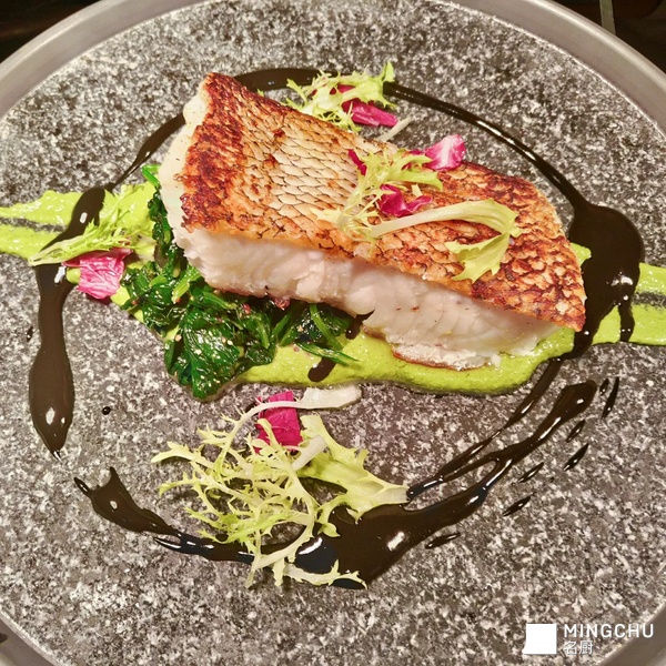 银鳕鱼富含丰富油脂,口感鲜嫩。搭配新鲜微酸的青酱起到一定调节解腻作用。