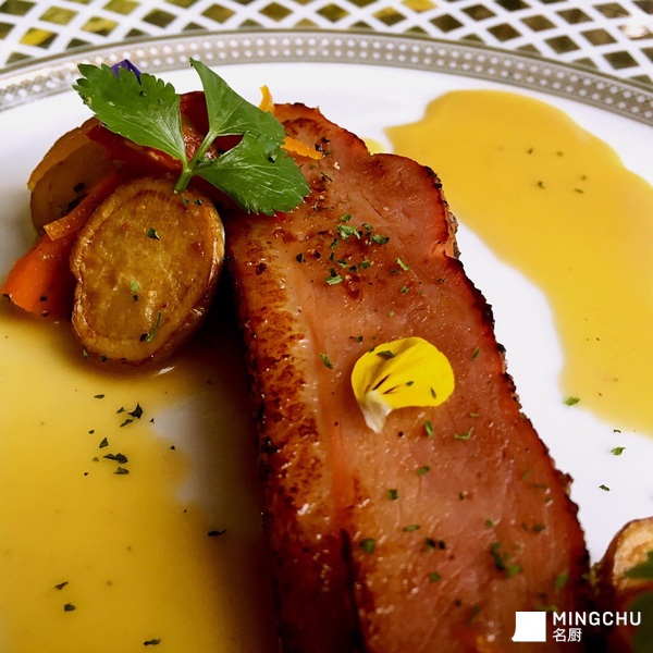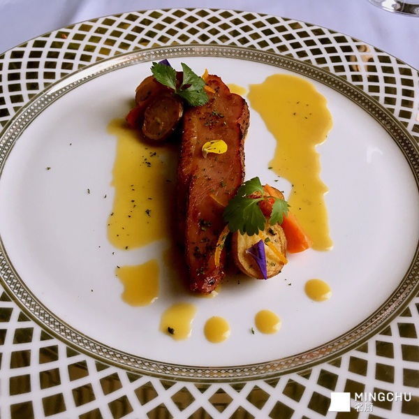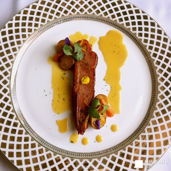 烟熏鸭胸配迷你小土豆及甜橙汁