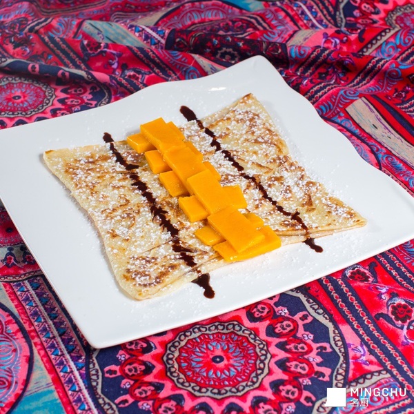 夹入新鲜果肉的印度飞饼外层金黄酥脆内层柔软白嫩,吹弹可破,嚼在嘴里层次丰富,一软一脆,水果芳香立刻倾溢而出,齿颊留香妙不可言!#热卖菜 #招牌菜 #创新菜 #高颜值 #甜品