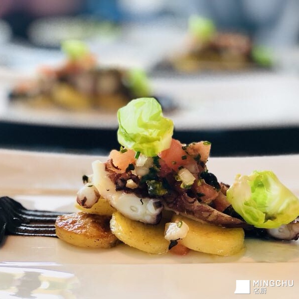 八爪鱼沙拉 塔吉黑橄揽 水煮土豆 鱼子酱