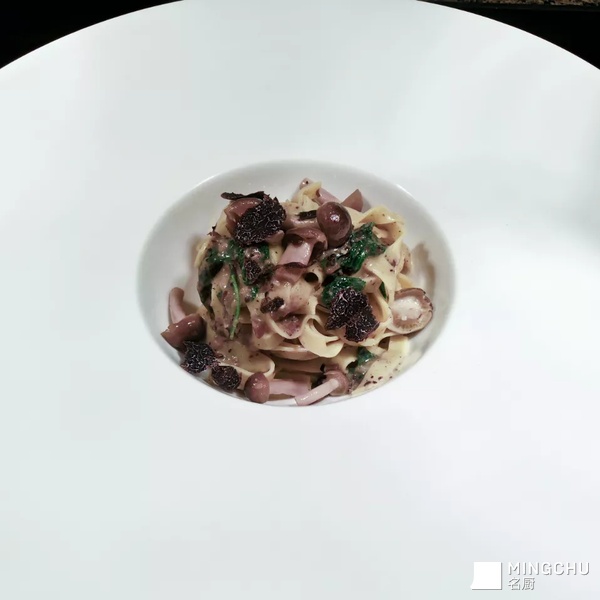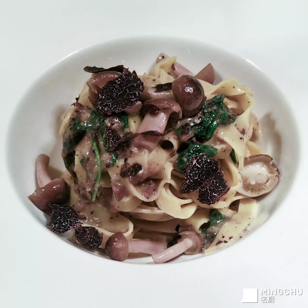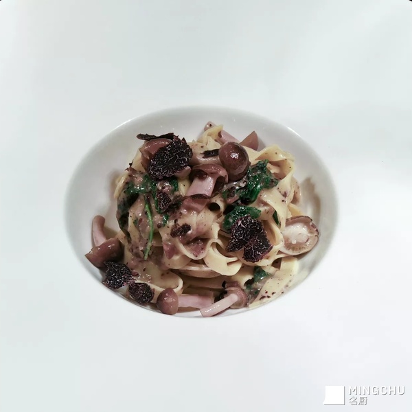 自制宽面,黑松露蘑菇酱,黄油汁