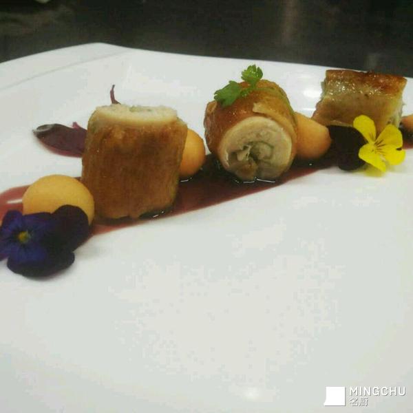 此菜借鉴西餐的手法,鸡腿肉加入香草酱,慢煮,后煎制