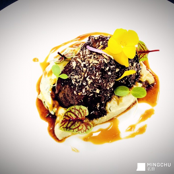 小牛脸颊肉低温慢炖,肉质酥烂,滑而不腻。浓香的奶汁菠菜,微酸的洋蓟心泥,浓缩的红酒肉质,清香的香草面包碎。