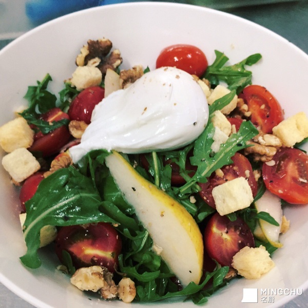 芝麻菜 啤酒梨 西红柿沙拉配核桃仁面包丁帕玛森芝士及白酒醋汁
