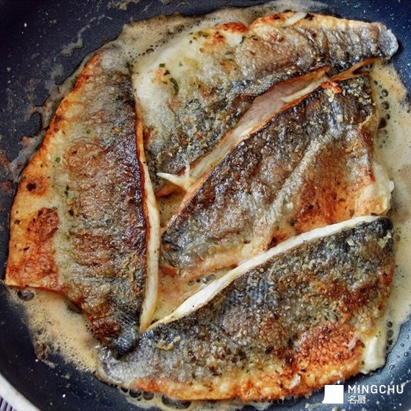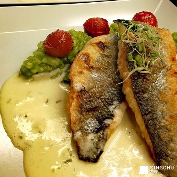 香煎海鲈鱼配意大利米饭柠檬黄油汁