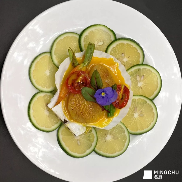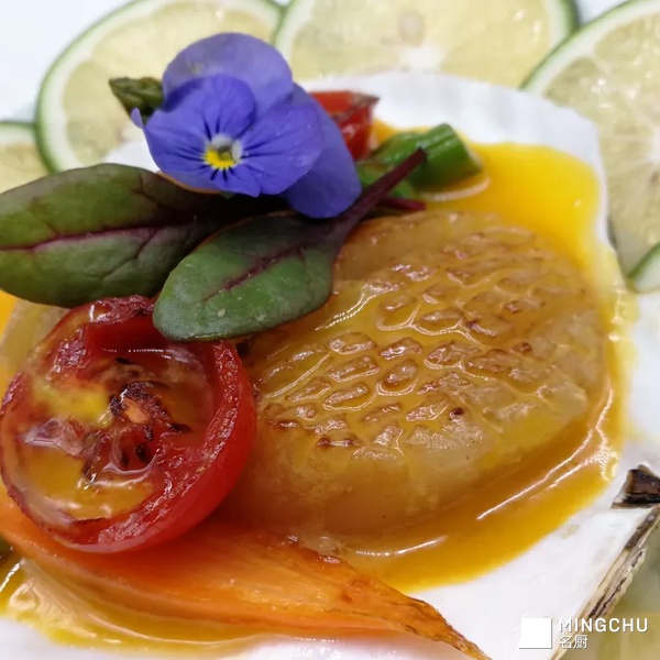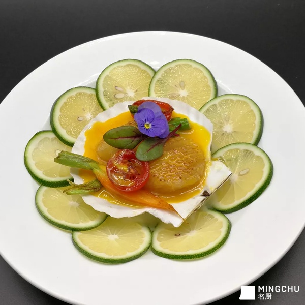 腌渍带子配柳橙奶油汁