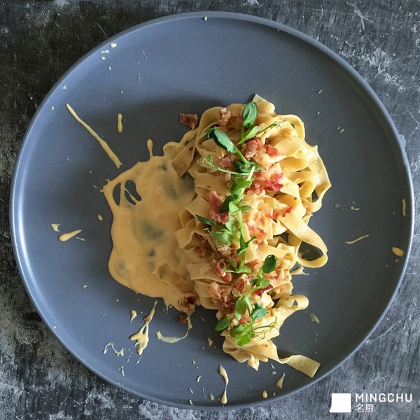 奶油培根面是很多西餐厅卖的较好的一道菜品,但是在酱汁方面很多餐厅因为害怕奶油过于油腻而选用了牛奶加黄油面粉的方式,浓郁度却大打折扣,也会使口感发粉!这回我用了浓缩的奶油来做酱汁,加入了酱油来调味,能够提鲜且去一些油腻感,意粉方面我则用了气味略甜的白兰地来烹饪,跟奶油也很搭配,摆盘时将奶油放在一侧,给客人自由选择的空间,喜欢浓郁而不怕油腻的顾客可以搅拌在一起来吃,而不中意奶油的顾客也不会因为酱汁与意粉的混合而无法入口!#我的创新菜 #传统菜 #高颜值
