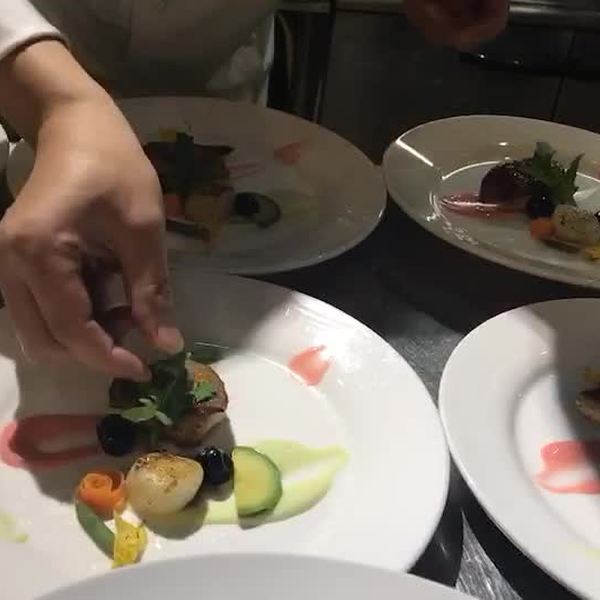 这道菜融合了法餐意大利餐日餐、他的风味比较独特、能感受到带子海水的甜味佐以芥末胡萝卜泥更提升在舌尖的味道、鹅肝配上酸奶牛油果酱可以使你的味蕾大开、好好享受这道美食吧!#求指教 #创新菜 #沙拉 #求点评