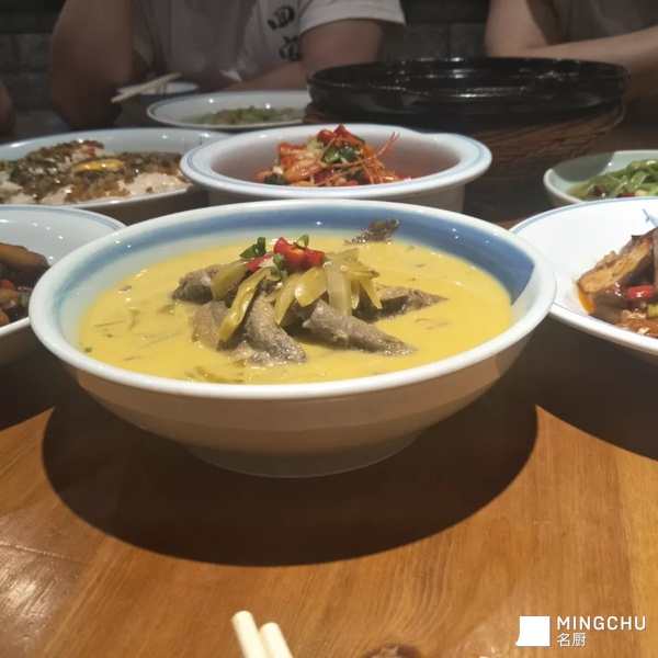 比较清爽,开胃,用新鲜鱼尾熬制浓汤,比较健康。让菜的口味更具饱满,配合酸爽的口味搭配。比跟川湘菜的黄鳅菜比起来,这个菜比较小清新,吃起来舒服不辣。适合这个季节。#我的创新菜