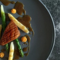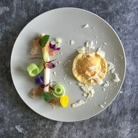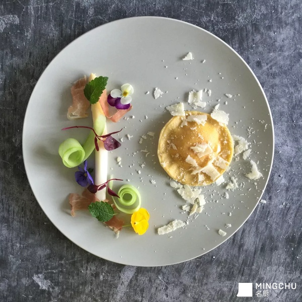 这款菜改自经常吃的虾饺,其中挤入的虾胶用虾饺的味道来进行调味,可以降低虾和蛋的腥气,口感比起传统挤入的里科塔奶酪更弹牙可口,芦笋则做成微酸口味来提味除腻!#融合菜 #传统菜 #创新菜