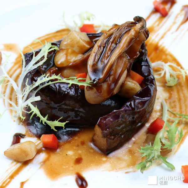 传统的一道烧茄子也可以做到鲜味十足,酱香浓郁,中国画风的摆盘提现了这道菜强烈的视觉感观。