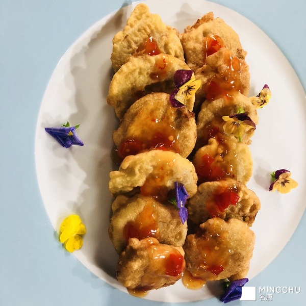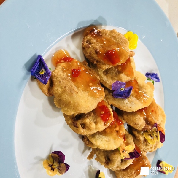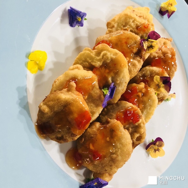 干炸藕盒配自制甜辣酱