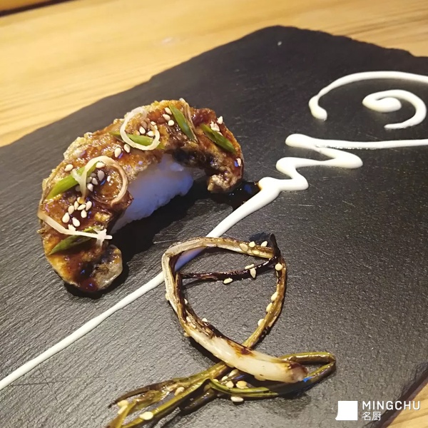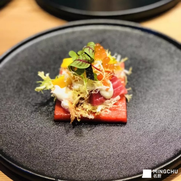 两款沙拉,一款蘑菇寿司结合别有意境