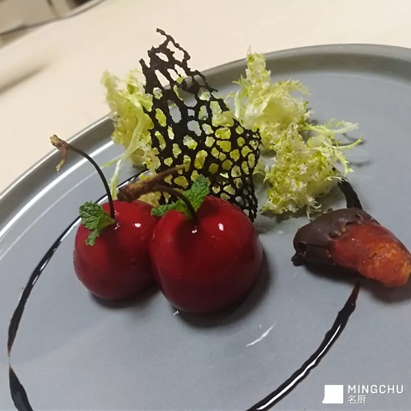 樱桃鹅肝配巧克力脆辣椒