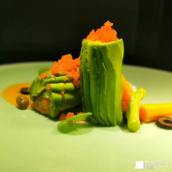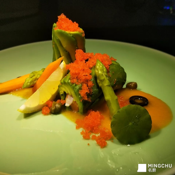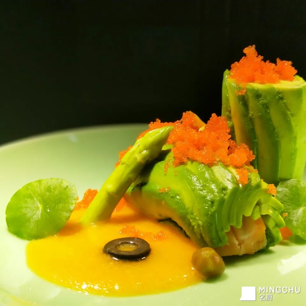 牛油果三文鱼卷配什锦迷你蔬菜沙拉
