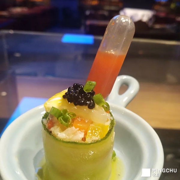 黄瓜鳕鱼卷及深海鲟鱼鱼子酱