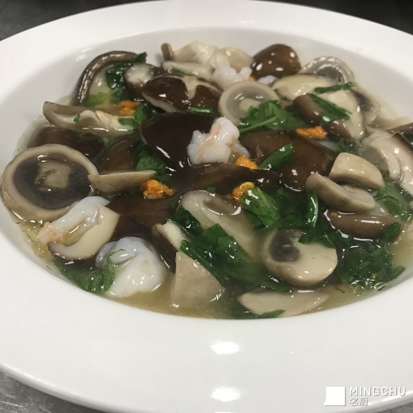 鲜虾荠菜烩鲜蘑