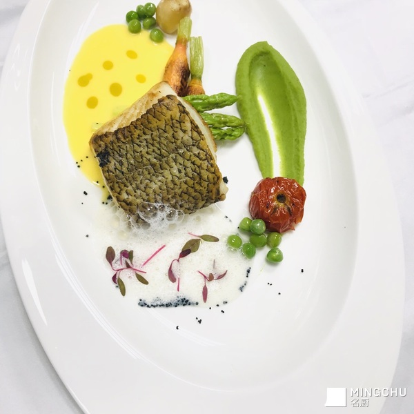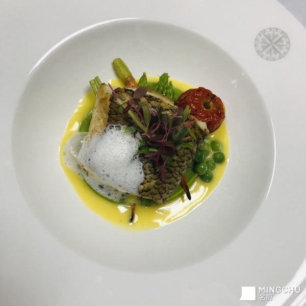 煎鳕鱼配香茅柠檬牛油汁茴香奶泡