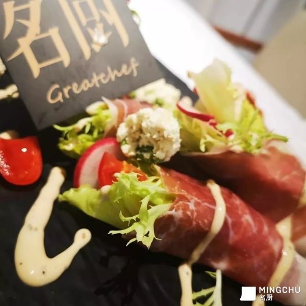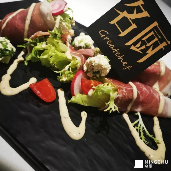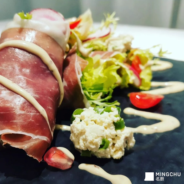 以风味独特的帕尔马火腿搭配了家乡豆腐,做到口味上的融合,在加入的沙拉汁使得味道更加具有独特性