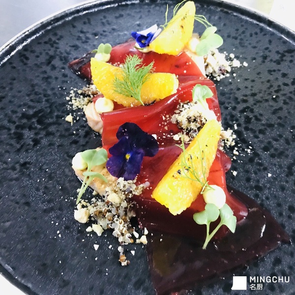 烧汁炙烤三文鱼/柠檬花香胶片/澳橙/藜麦/