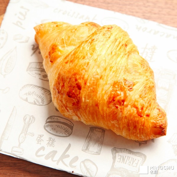 面粉的筋质和黄油的油脂会直接影响牛角包的口感、弹性,以及蜂窝的层次感。面粉需要将高筋面粉和低筋面粉混合使用,如果只用一种,口感较差。在法国有一种可颂黄油,是一款牛角包专用的黄油,油脂含量达82%,最为理想,制作时它与面的亲和力很好,出品的分层度和酥脆度也最棒。叠层的工序同样很重要,最终达到729层,每层厚薄要均匀。