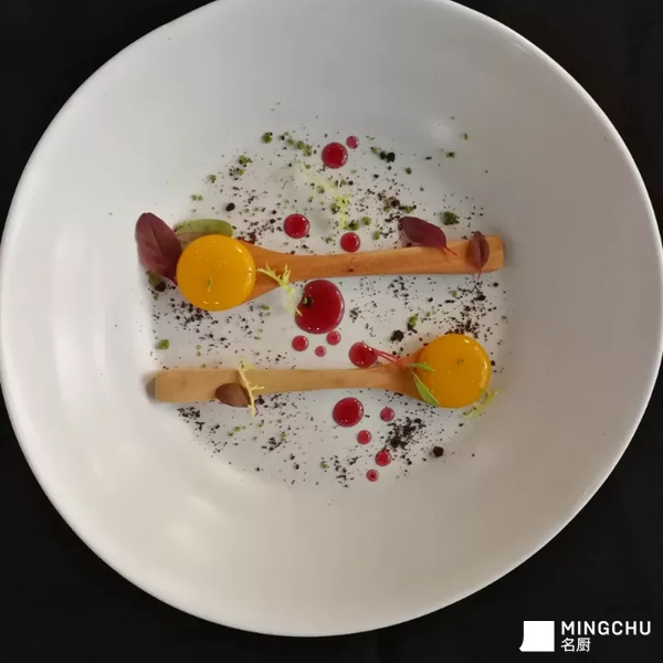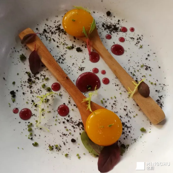 也写上去 不就分子料理后的芒果球。 太假了吧