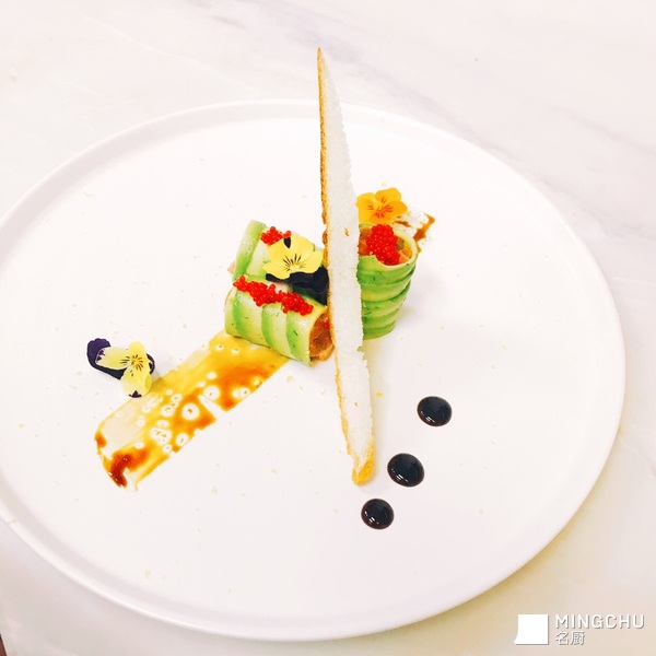 牛油果卷三文鱼塔塔及黑醋汁