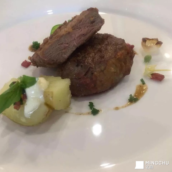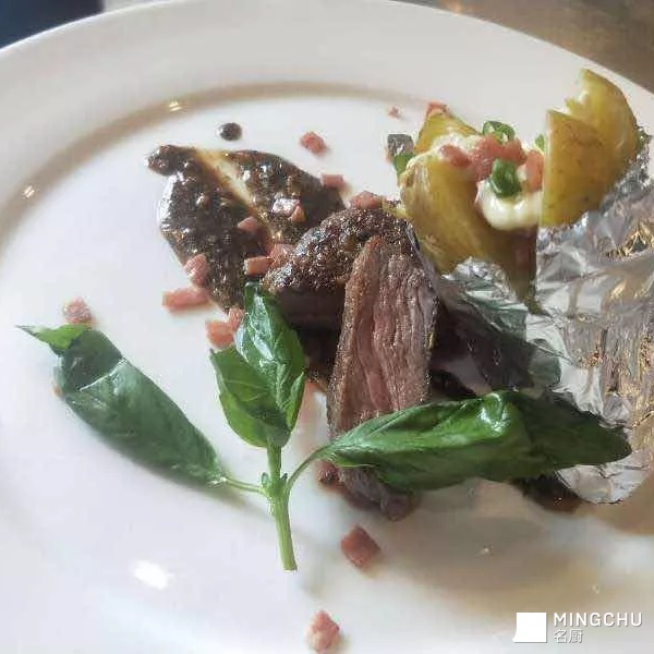 烤牛柳配土豆花佐黑椒汁