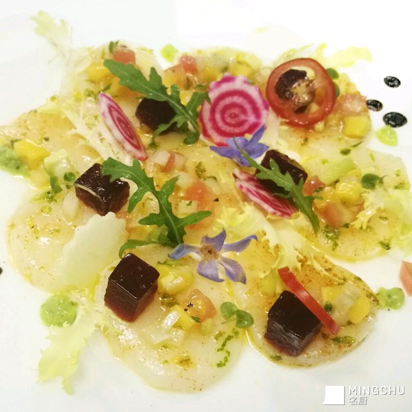 低温生吃带子配芒果莎莎及蔓越莓啫喱