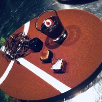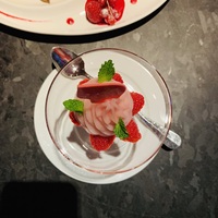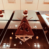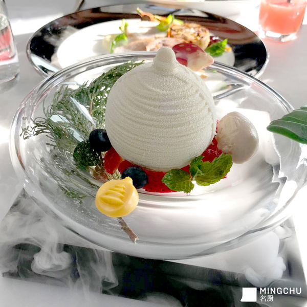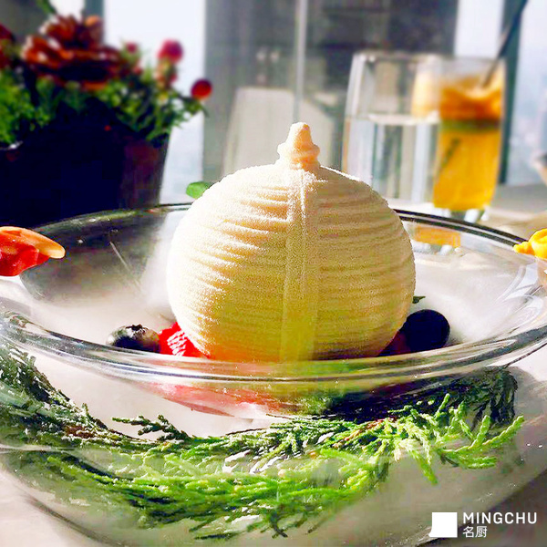 甜品名为“圣诞回忆”,灵感来自圣诞树上的各种装饰物,以铃铛造型的白巧克力球为主,填充了今年新款的限量版法芙娜巧克力,低糖又清爽。上桌时用干冰营造出冰雪般的视觉效果,增添节日气氛。