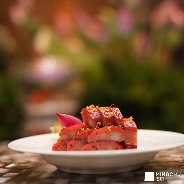 选用嫩藕和糯米结合,桂花风味浓郁、鲜甜口味。此菜可做热菜咸味的,夏天也可以酿入绿豆和猪踭肉一同煲制,消暑,汤鲜味好。