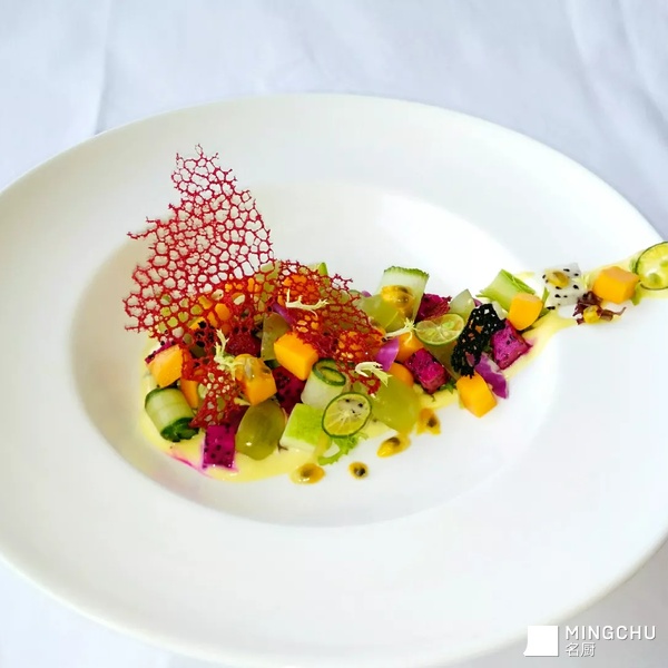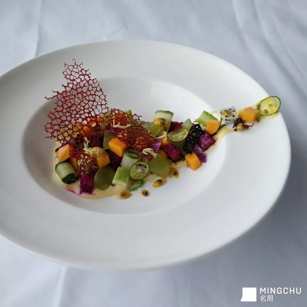 什锦水果配百香果酱沙拉