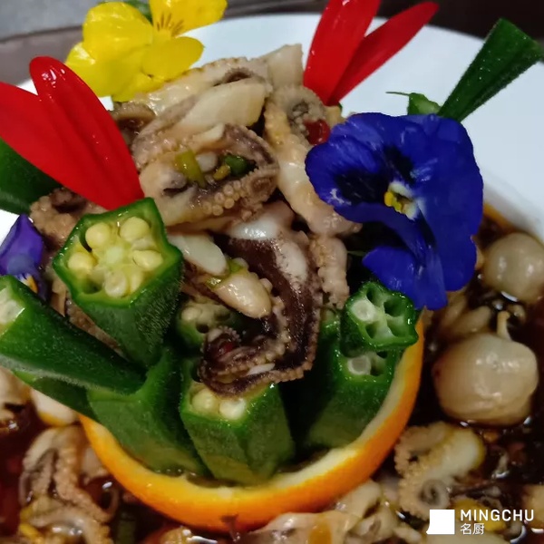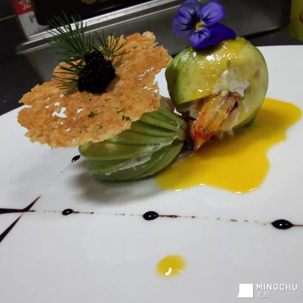 冰岛鳕鱼百香果酱玉桂香梨 牛油果阿根廷红虾沙拉