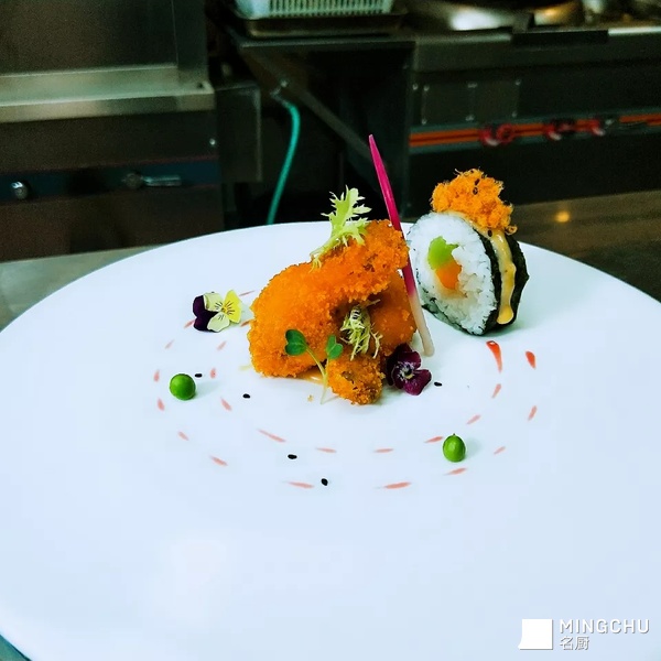 悟 脆皮百花蟹钳配日式寿司卷 龙腾四海 百香果凤尾虾 三文鱼