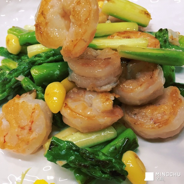 虾仁焦香芦笋脆嫩。