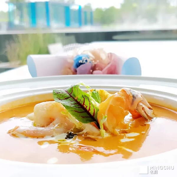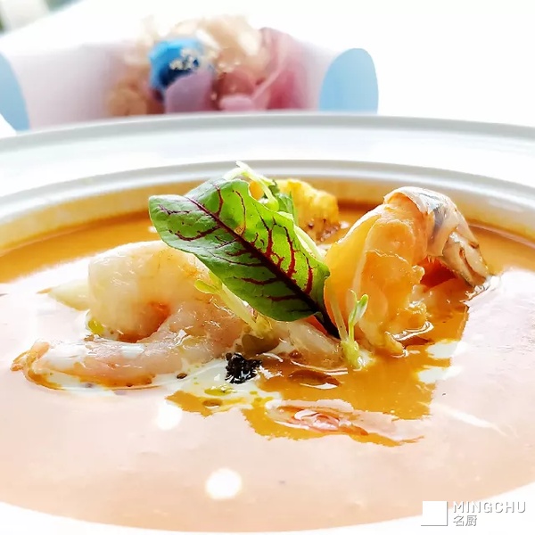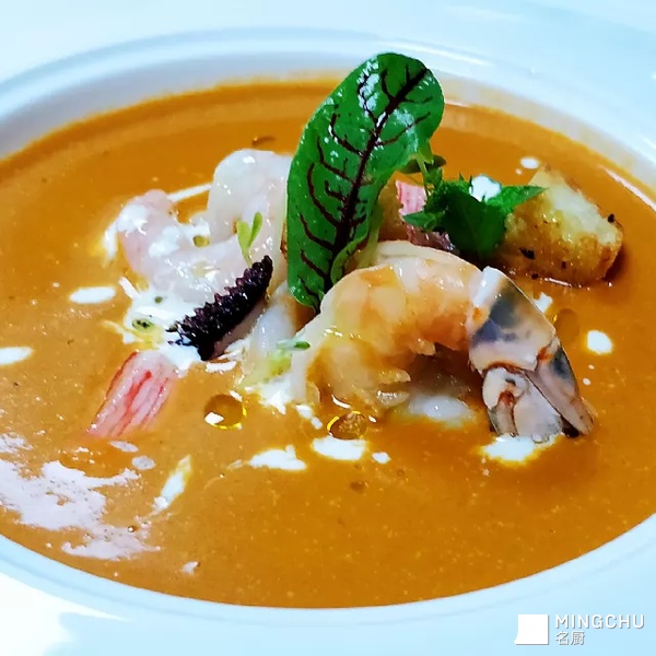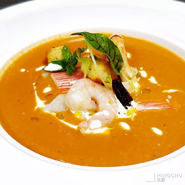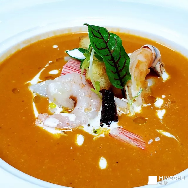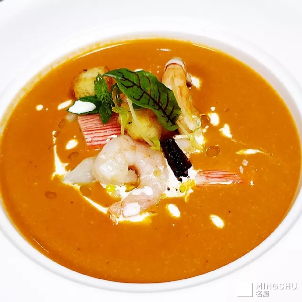 意式番茄海鲜浓汤配罗氏虾