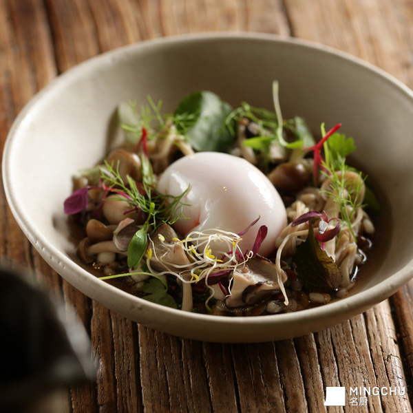 较为清澈的蔬菜或菌菇汤,在呈盘的时候可以考虑用小壶装盛,上菜后再倒入清汤,这样不会影响原汤品的摆盘,也增加了餐桌的趣味性。