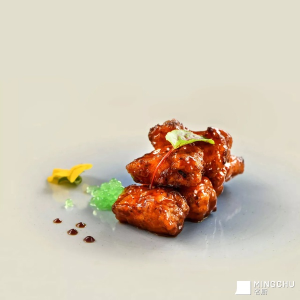 这道菜是一道热菜冷做。属于一道创新融合菜,龙利鱼口感比较细腻,肉质比较松软。有弹性,腌制比较容易入味,成本也比较低,利率很高。并融合分子的烟熏技术,使肉质吃起来有种淡淡的松香味。