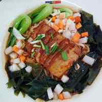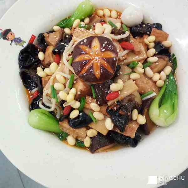 这款罗汉面,由于配菜丰富,香菇,黑木耳,腐竹,鹌鹑蛋,油菜,黄豆嘴等等,你拿到面后调好,第一口吃到的绝对不会是面,保证是红色的枸杞,亦或白色的鹌鹑蛋,亦或绿色的油菜,亦或黑色的木耳,亦或黄色的腐竹,而你吃的最后一口也绝对不会是面,而是黄豆嘴。我吃完这款面,就一个想法,罗汉面是款有料的面。